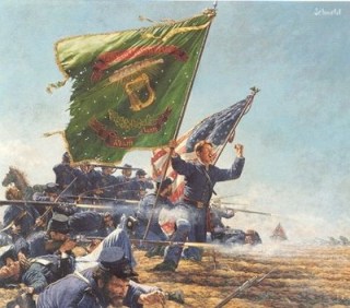 Armies everywhere used to march into battle with their standard bearer (the guy with the flag) right up front. He was the visual proclamation of who an army was. He was absolutely essential in warfare, and darn near a required part of battle He did not fight the battle himself, rather his job for the army was to bravely march forward announcing to everyone who saw him “this is who we are and what we stand for, by golly!” There was no mistaking allies or enemies in a time when a contingent unfurled their colors and lifted them high for all to see.