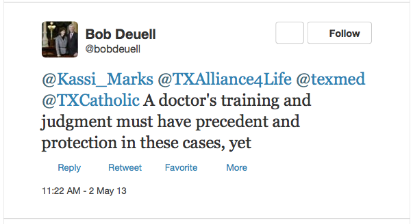 Deuell and supporters say that SB 303 was all about giving patients more rights, despite bill language to the contrary. But last year he tweeted the following, which really says it all: