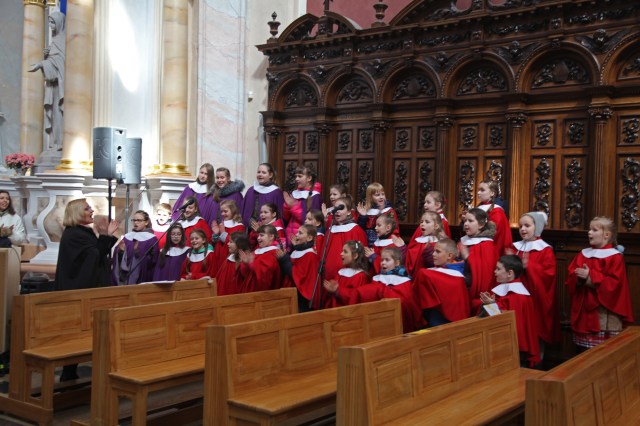 The children choir in Kaunas Cathedral, Lithuania, practicing for Easter Sunday Mass