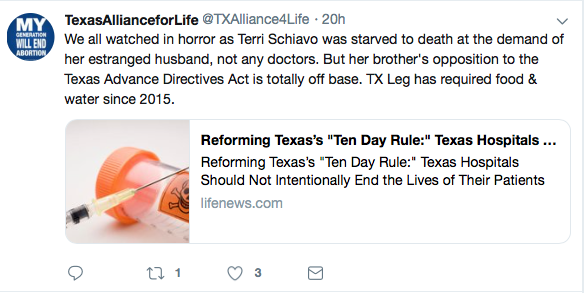 TAL also has tweeted its support of involuntary passive euthanasia and against patient rights and due process – repeatedly: