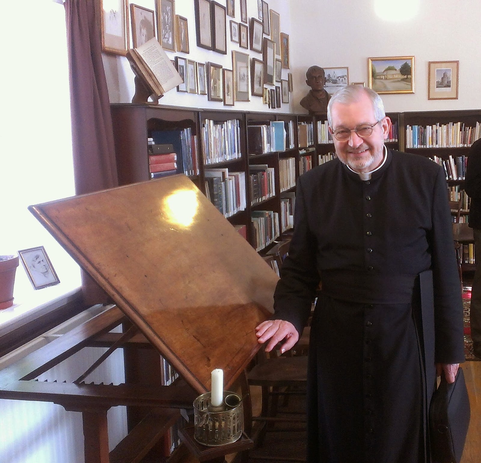 | A simple writing desk…Posted: 08 Oct 2019 03:08 PM PDT It has been said that John Henry Newman “wrote himself into the Church.” If there is any truth in that, then it took place on this desk, where he wrote his Essay on the Development of Christian Doctrine. It was 1845, and he had been at Littlemore for the previous few years. He was undergoing spiritual suffering, and he was eating so little that he was described as “ghostly thin.” He stood at this desk to write, the writing surface adjusted to be at a slight slope, and by the time he finished the work he knew he would enter the Catholic Church. Is it possible to know something of the man simply from a piece of furniture? Objectively speaking, perhaps not; but I cannot deny the overwhelming sense of Newman’s journey as I laid my hand on the surface of the desk where his own hand had laboured, and where his heart searched out and found its home. It was on 9 October 1845 that John Henry Newman was received into the Church by Bl. Dominic Barberi. On 10 October 1845 an altar stone was placed on this very desk, and the Holy Sacrifice of the Mass was offered — the Mass at which John Henry Newman received his first Holy Communion as a Catholic layman. He never again used this desk as a place to write. He said he could not, knowing that it had been used for so great a Mystery as the Mass. |