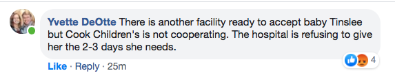 Please continue praying for Baby Tinslee and that another facility is found. The TRO is just that – temporary.