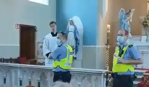 One parishioner, as seen in the video, asserted to the intruders that “this is a house of God,” and asked the names of the policemen. “Are we back in the Penal Times?” – the parishioner asked, drawing the correlation to a time when Catholicism was outlawed and Catholics were persecuted for the Faith in Ireland?