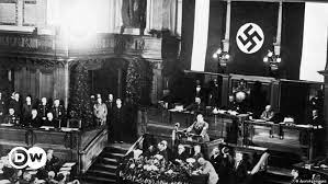 In January 1933 Nazi Party leader Adolf Hitler convinced President Paul von Hindenburg to appoint him as chancellor, the head of the German government.[3] Four weeks into his chancellorship, the Reichstag building caught fire in the middle of the night.[4] Hitler blamed the incident on the communists and was convinced the arson was part of a larger effort to overthrow the German government. Using this justification, Hitler persuaded Hindenburg to enact the Reichstag Fire Decree. – Wikipedia [https://en.wikipedia.org/wiki/Enabling_Act_of_1933]